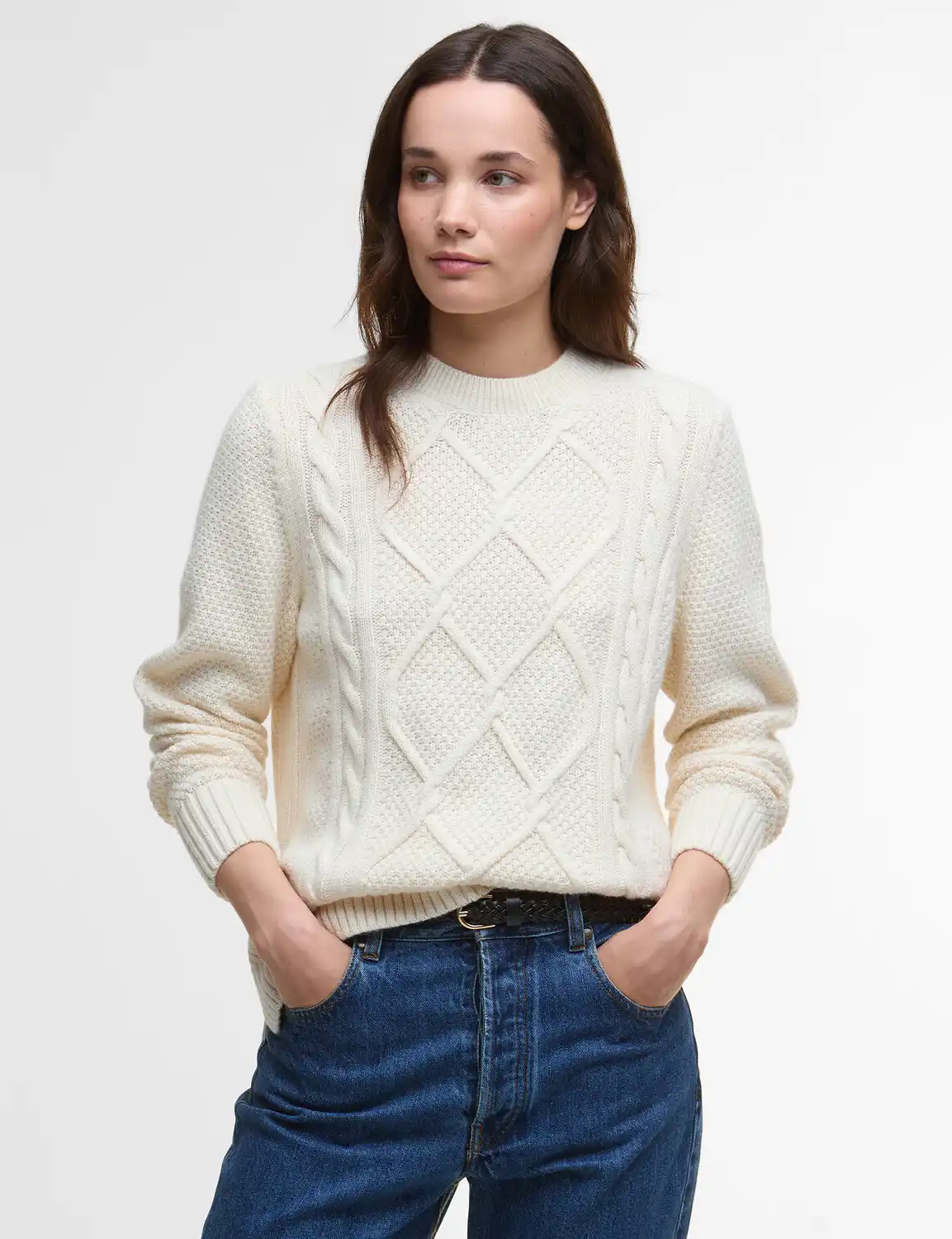 Barbour Women's Burne Crew Neck Jumper | Ecru