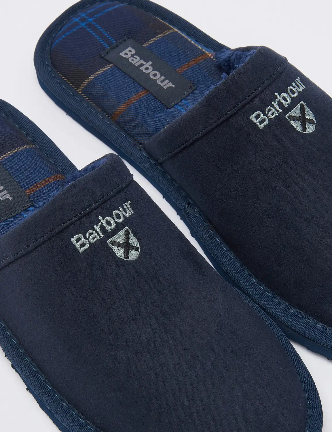The Barbour Everitt Mule Slippers combine everyday comfort with refined craftsmanship. Made from soft faux suede, they feature the Barbour Saltire logo embroidery across the foot for a distinctive touch. A signature tartan lining adds a classic Barbour finish, while the cushioned, tartan-lined sole ensures exceptional comfort and warmth. Perfect for relaxing in style, these slippers offer the ideal balance of luxury and ease.
