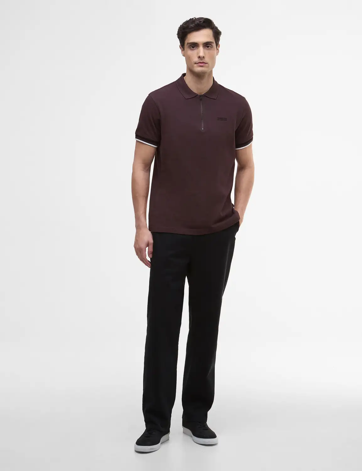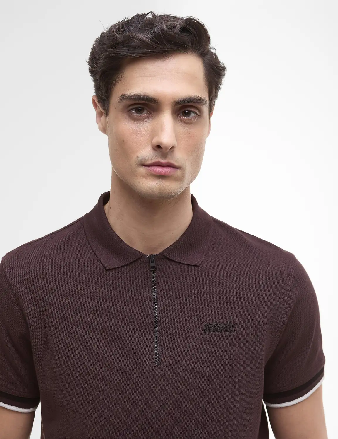 The B.Intl Buxton Tipped Polo Shirt, a refined staple crafted from 100% cotton piqué for breathable comfort. The design is distinguished by a multi-tipped cuffs, and a modern zip placket—offering a polished take on a timeless silhouette. A versatile piece that transitions seamlessly from casual to smart-casual settings.