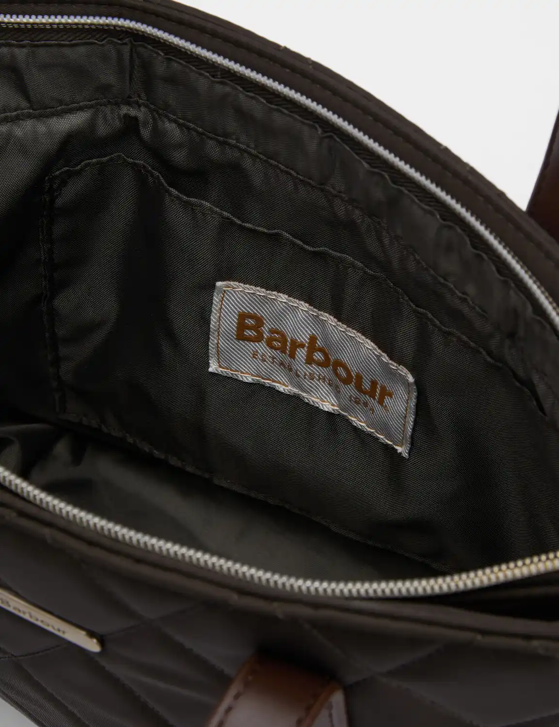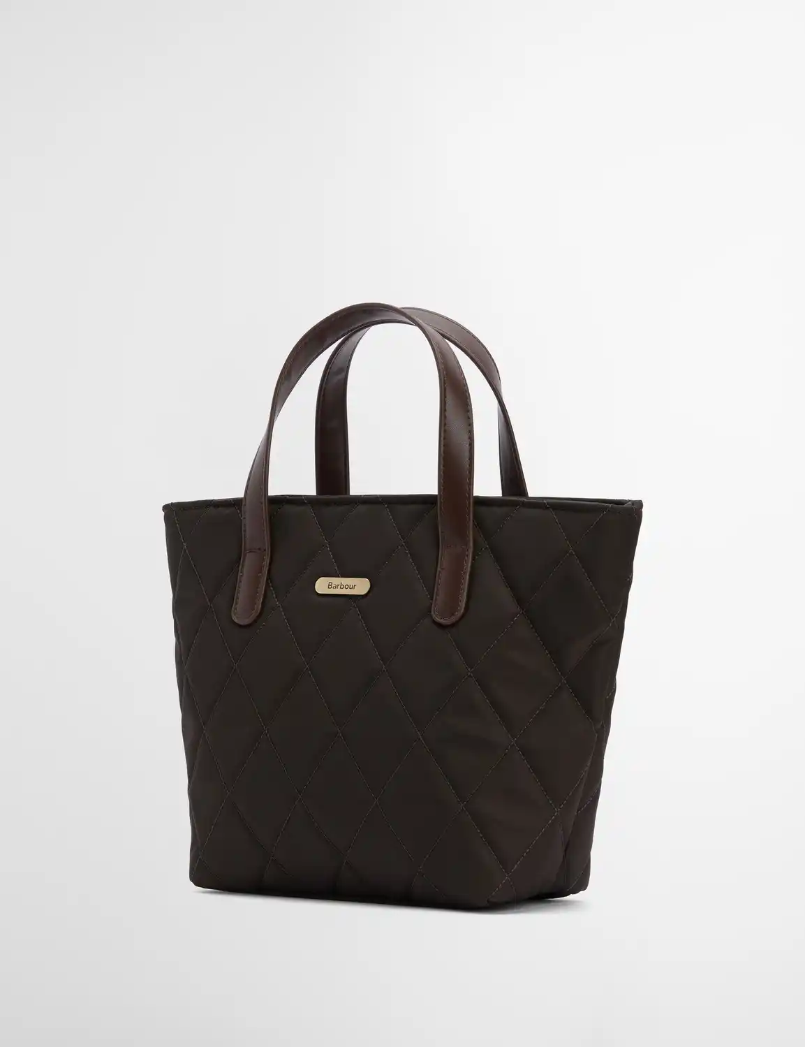Compact yet stylish, the Barbour Quilted Mini Tote Bag offers a modern twist on a classic design. Crafted from durable nylon with a signature quilted finish, it features sleek leather-look handles and a coordinating front badge for a refined touch. Perfectly sized to carry your daily essentials, this versatile tote blends practicality with understated elegance, making it an effortless companion for city strolls or weekend outings.