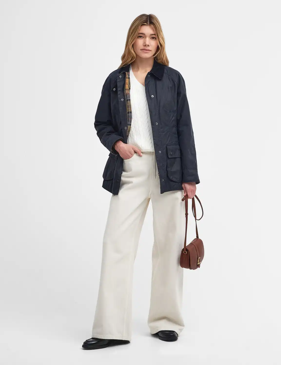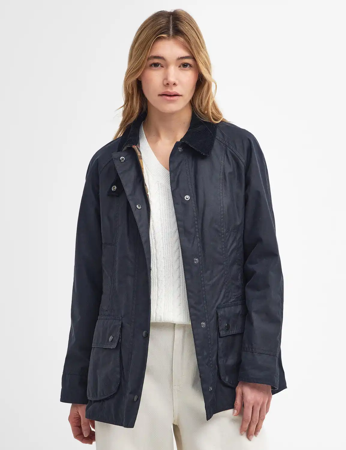 The Beadnell Wax Jacket, based on the legendary Bedale Jacket but cut to a more flattering feminine silhouette. A standout country staple that is crafted in thornproof waxed cotton and styled with a cord lined collar and multi-pocket functionalility.