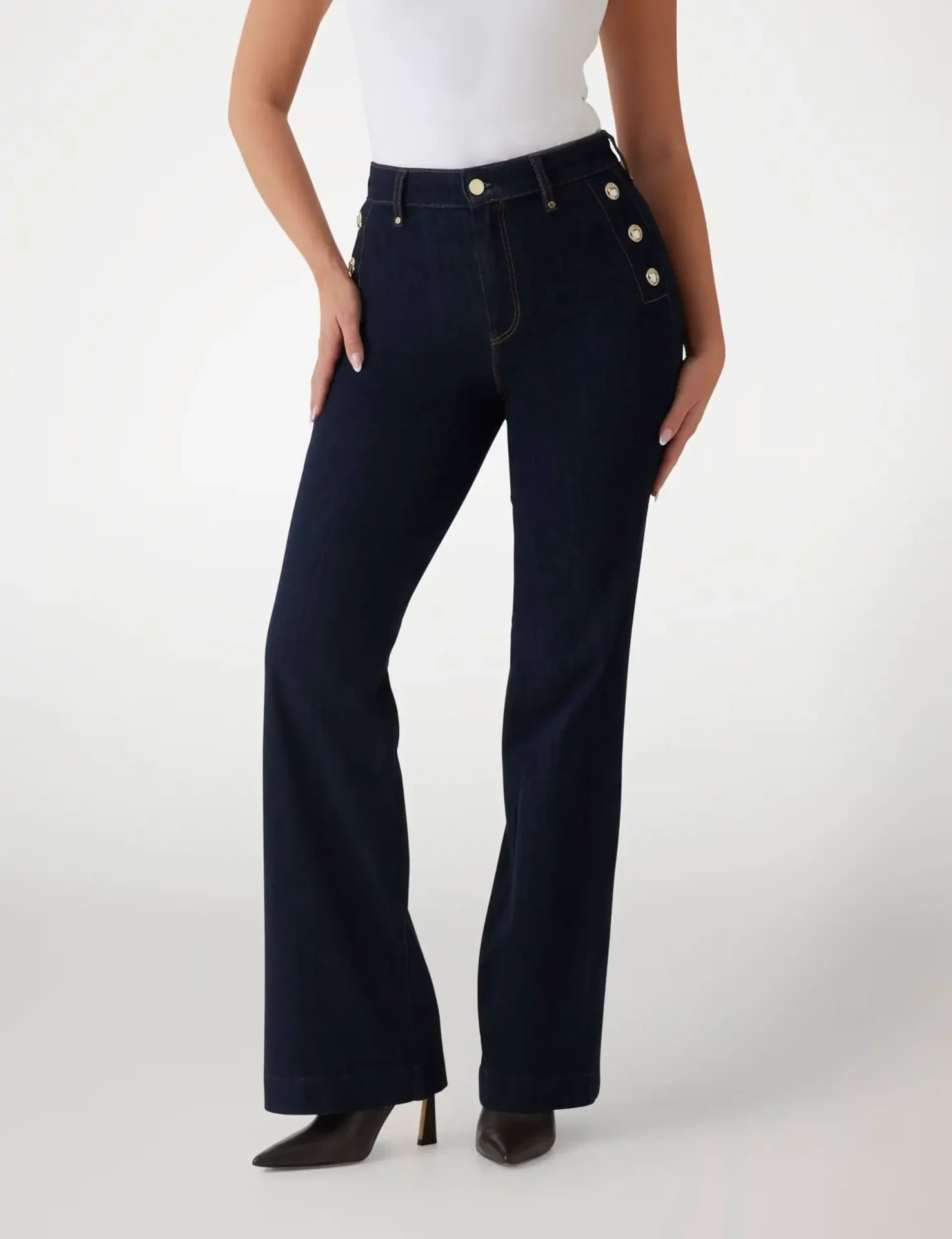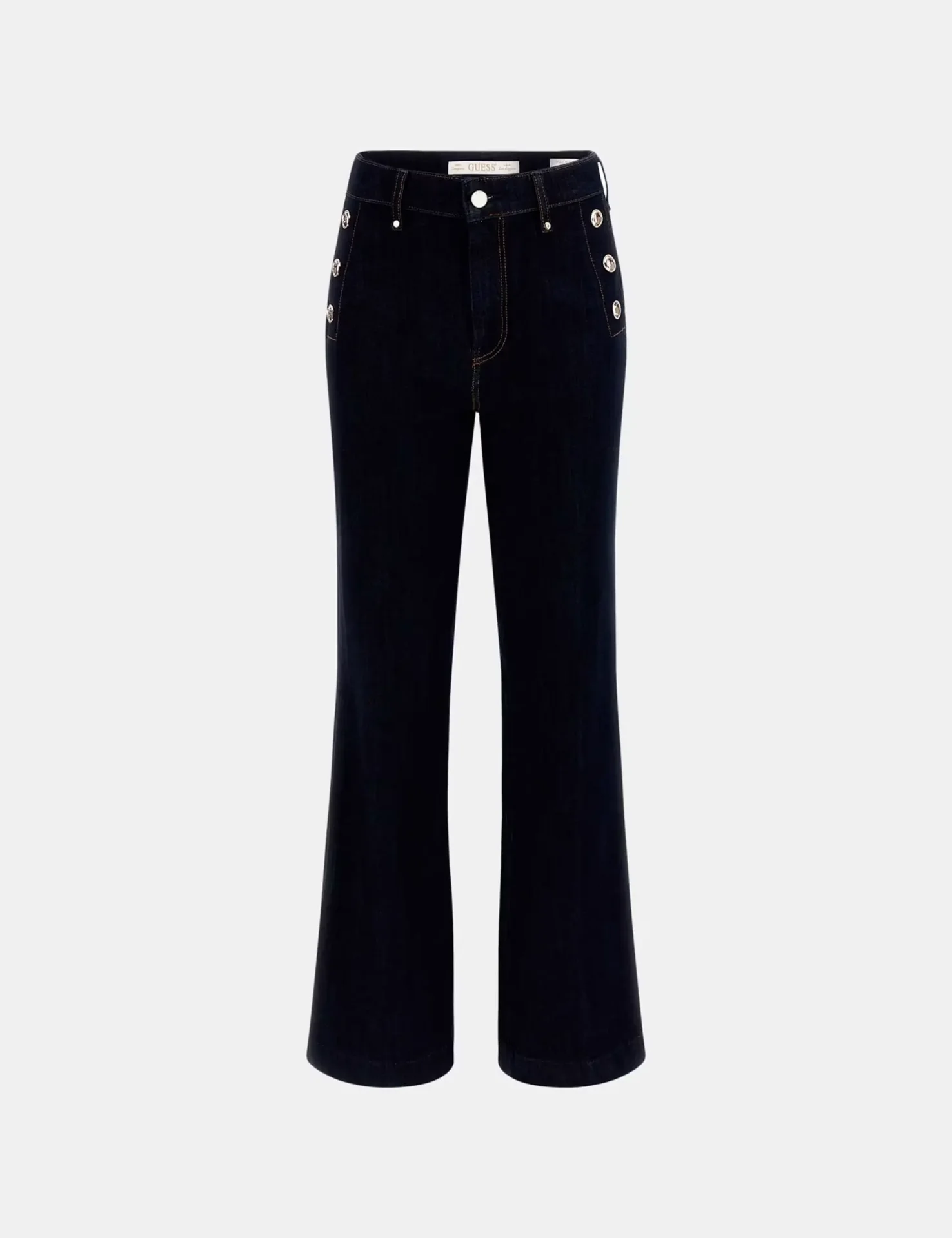 The Guess New Faye Chino Jeans blend comfort and sophistication with their bi-stretch denim, high-rise waist, and wide-leg palazzo fit. Finished in a sleek rinse wash with a classic button fastening, they’re perfect for effortless, everyday style.