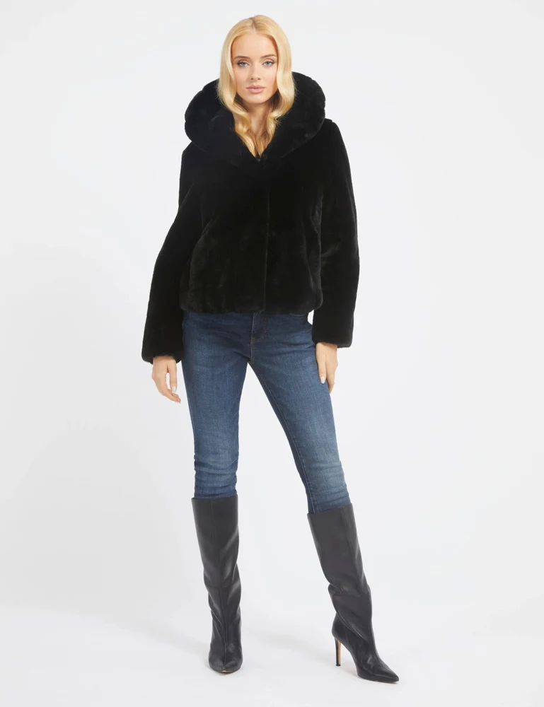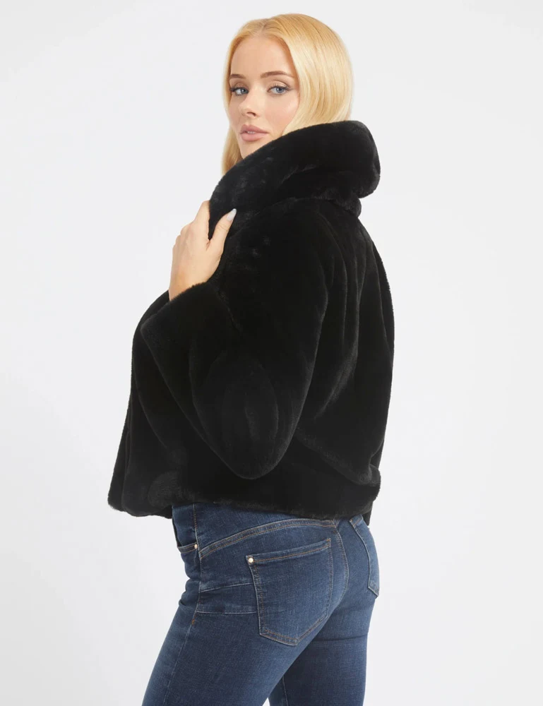 The Guess Sophy Faux Fur Jacket brings luxurious warmth and effortless elegance to your winter wardrobe. Crafted from ultra-soft faux fur, it features a chic shawl collar and long sleeves for a refined, feminine silhouette. The front hook fastening allows for clean, seamless styling, while the regular fit ensures comfort and versatility. A statement layer that pairs beautifully with both casual and evening looks.