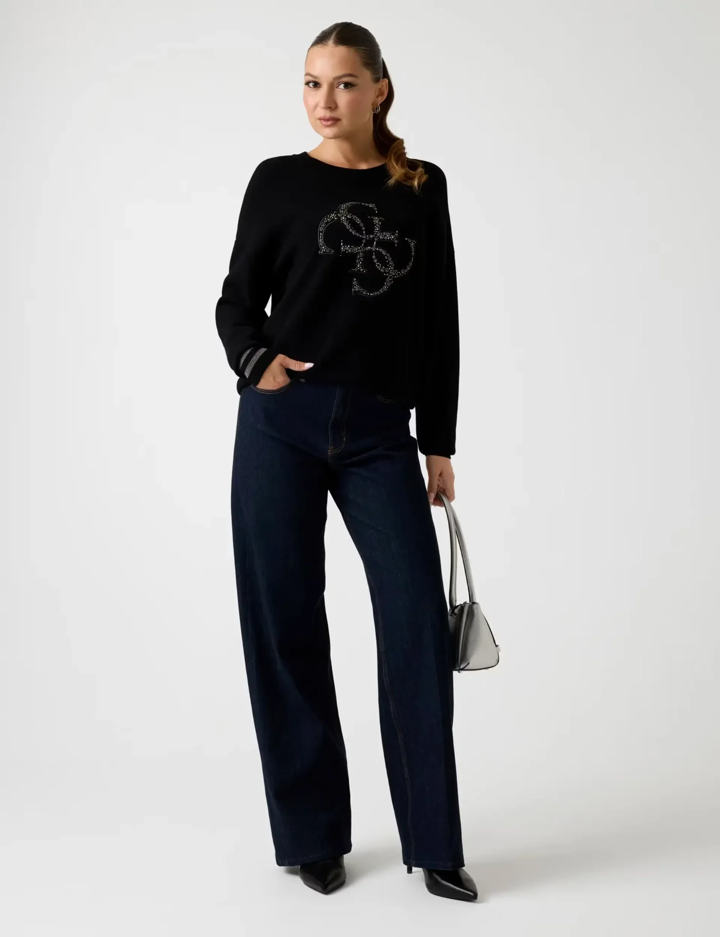 Guess Studded Logo Sweater | Black