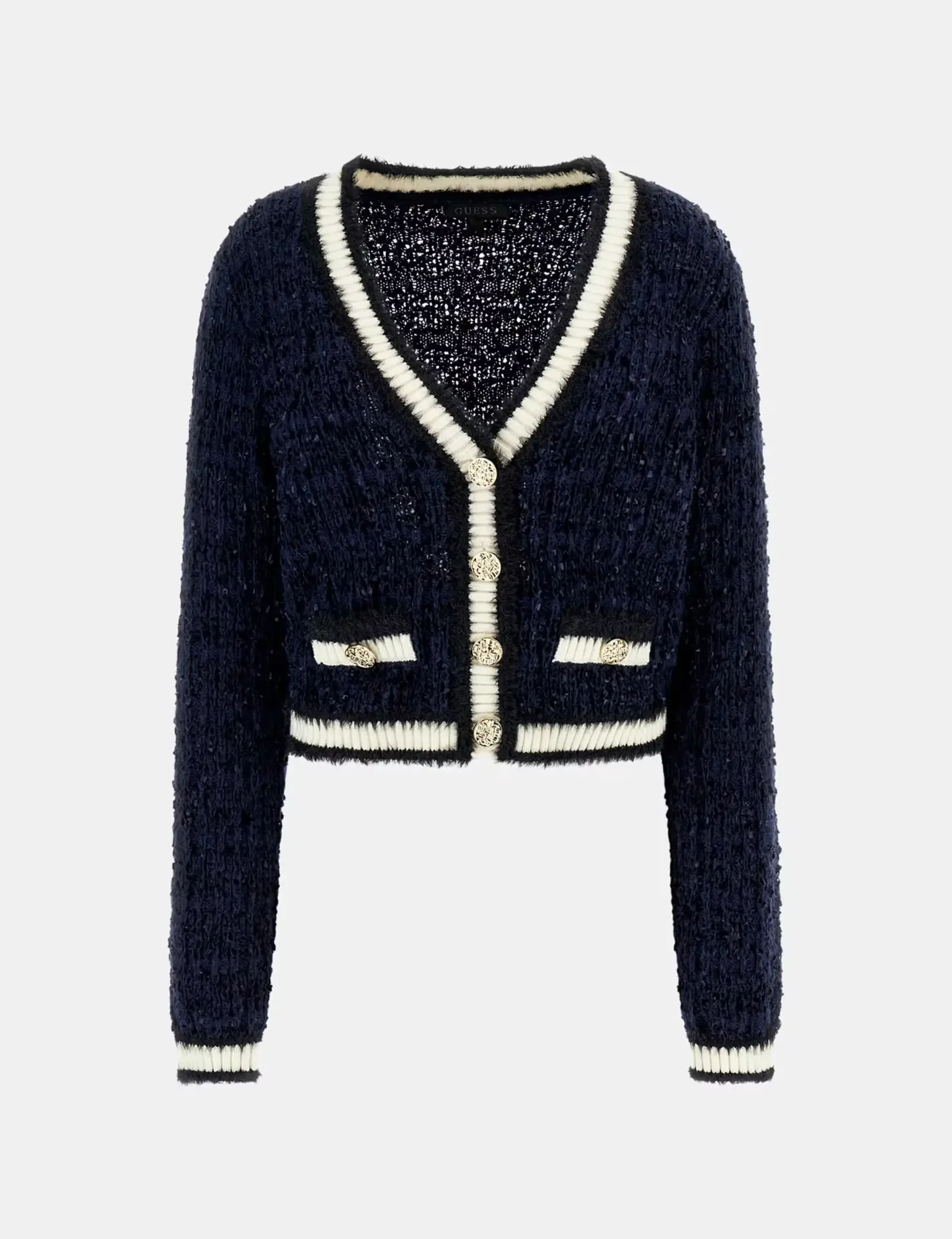 The Guess Textured Knit Cardigan combines elegance and comfort with its soft textured fabric, contrasting stripes, and jewel button fastening. Finished with a V-neckline and long sleeves, it’s a chic staple for effortless everyday style.