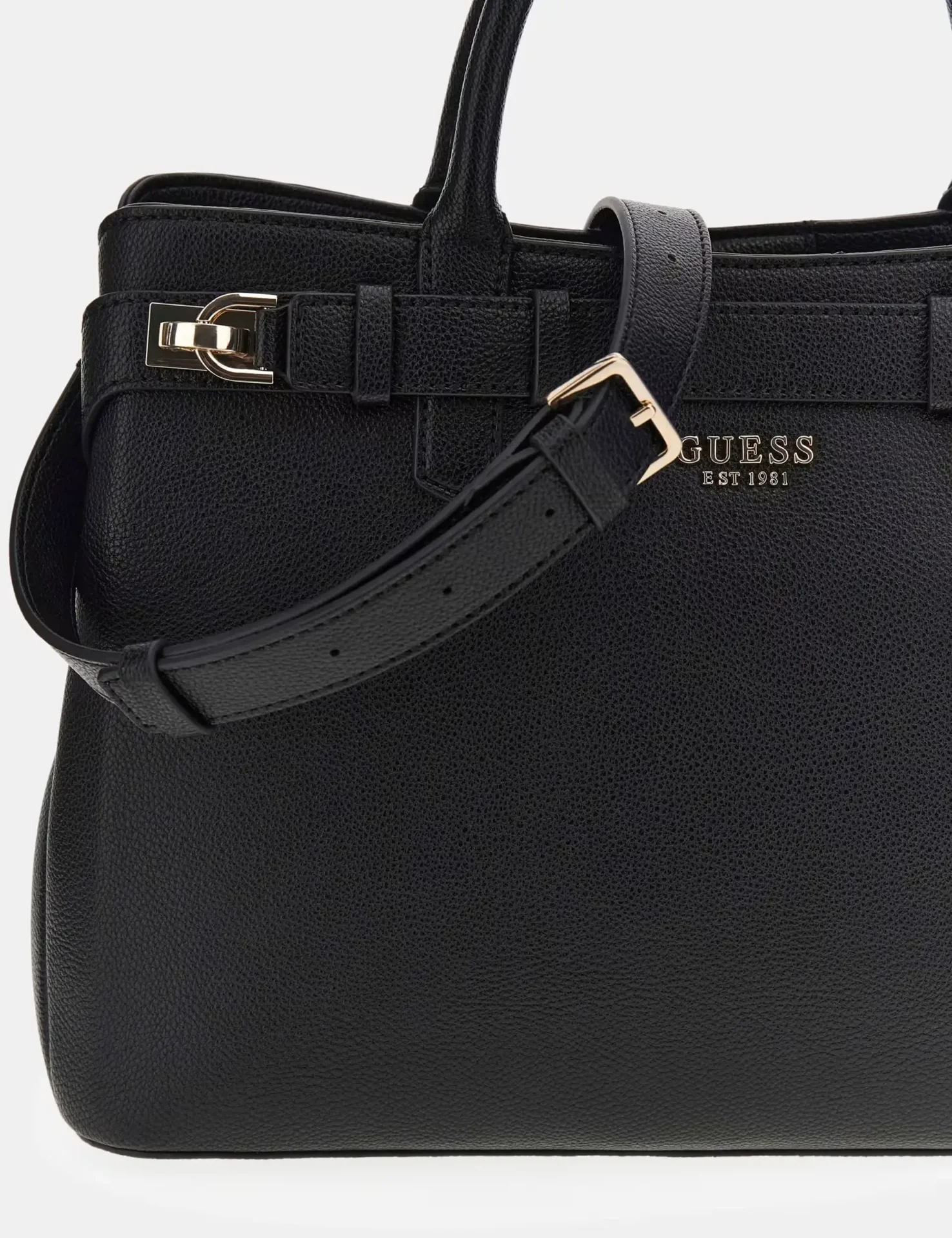 This sophisticated looking handbag from Guess is crafted in a soft, tumbled faux leather and offers versatility with its dual handles for various carrying options. The perfect day-to-day accessory to keep all your daily essentials in one fashionable place.