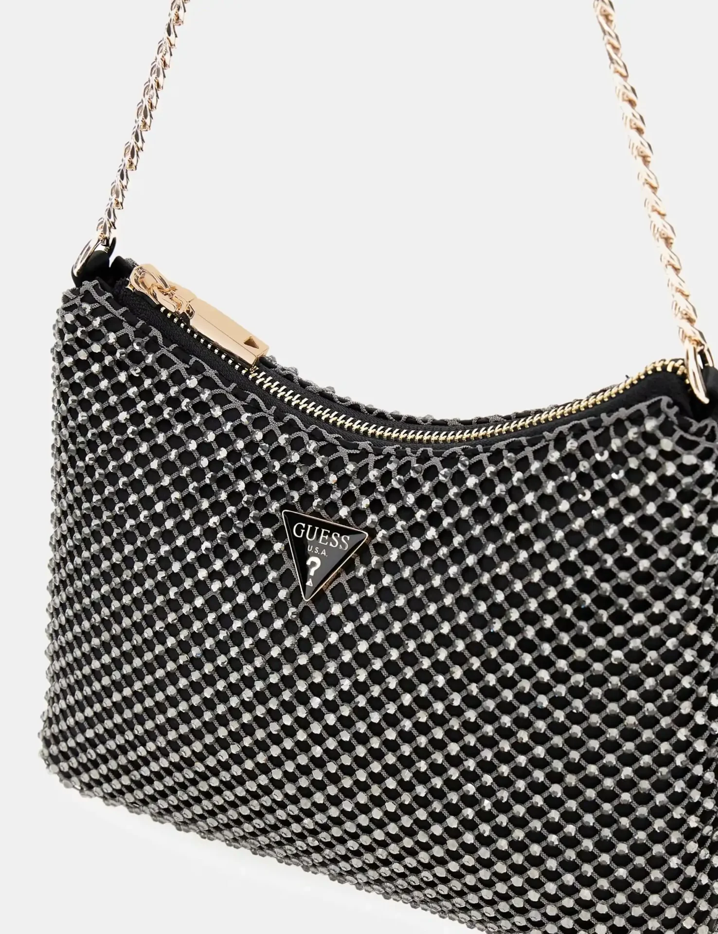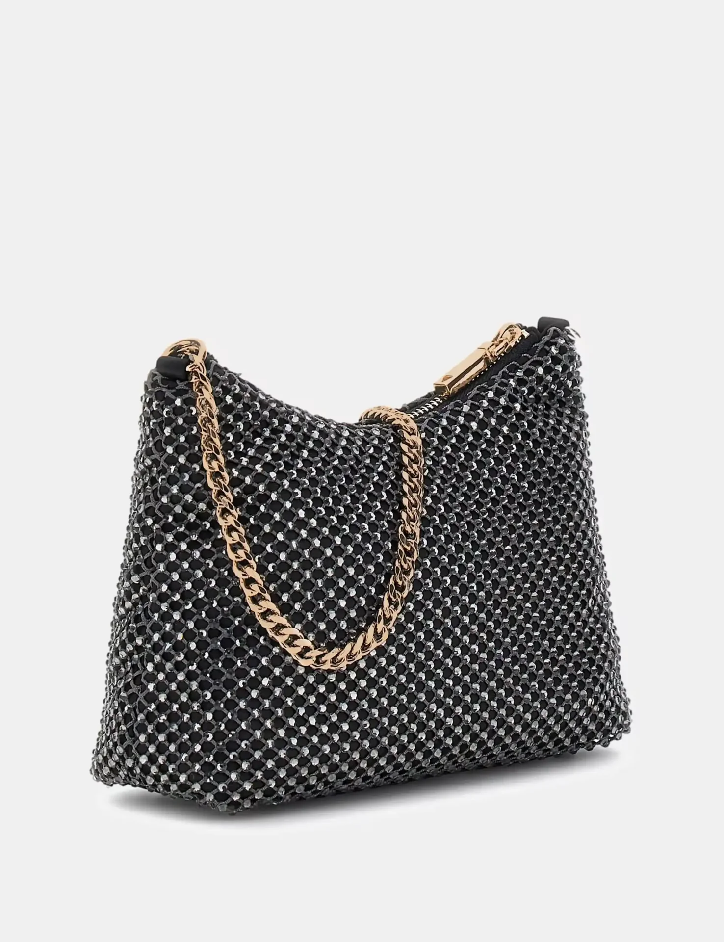 Add a touch of luxe to your evening outfit with this mini rhinestone shoulder bag from Guess. The Zalina bag is intricately decorated with an outer rhinestone mesh to give this bag an amazing finish.