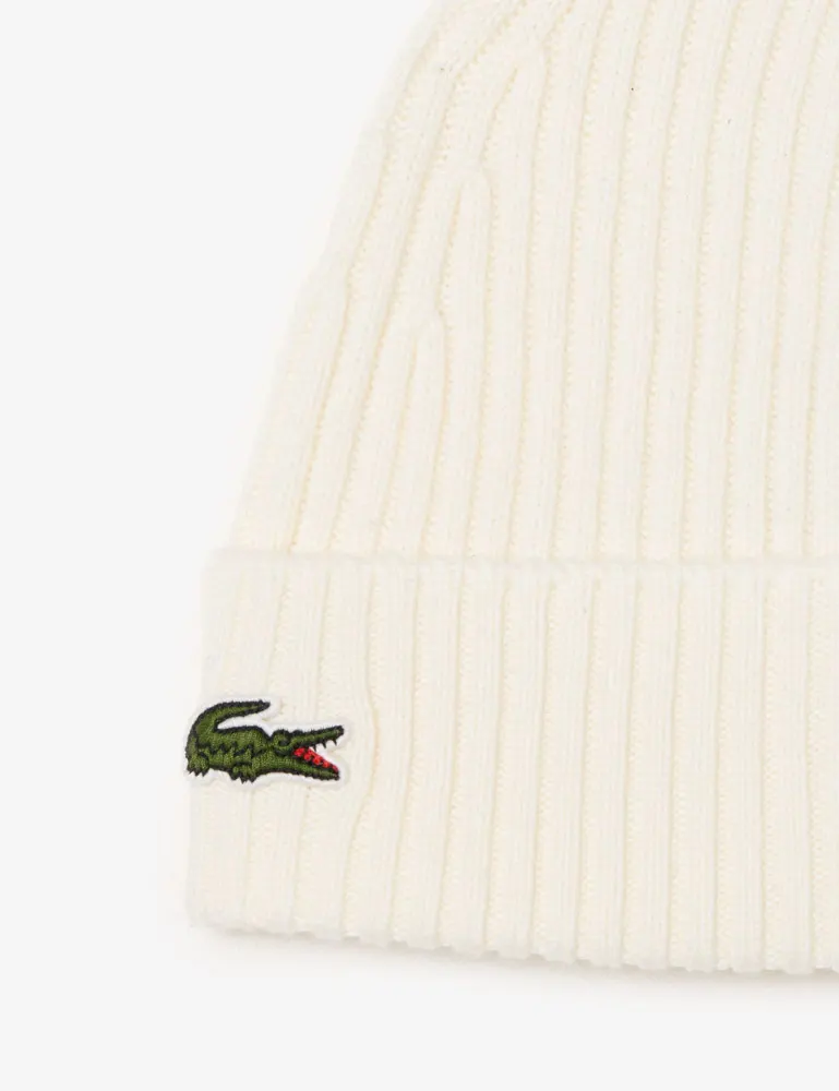 Picture of Lacoste Rib Knit Wool Beanie | Winter White