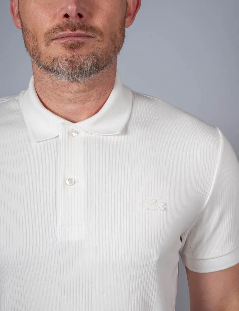 Lacoste Ribbed Cotton Jersey Polo Shirt | Flour