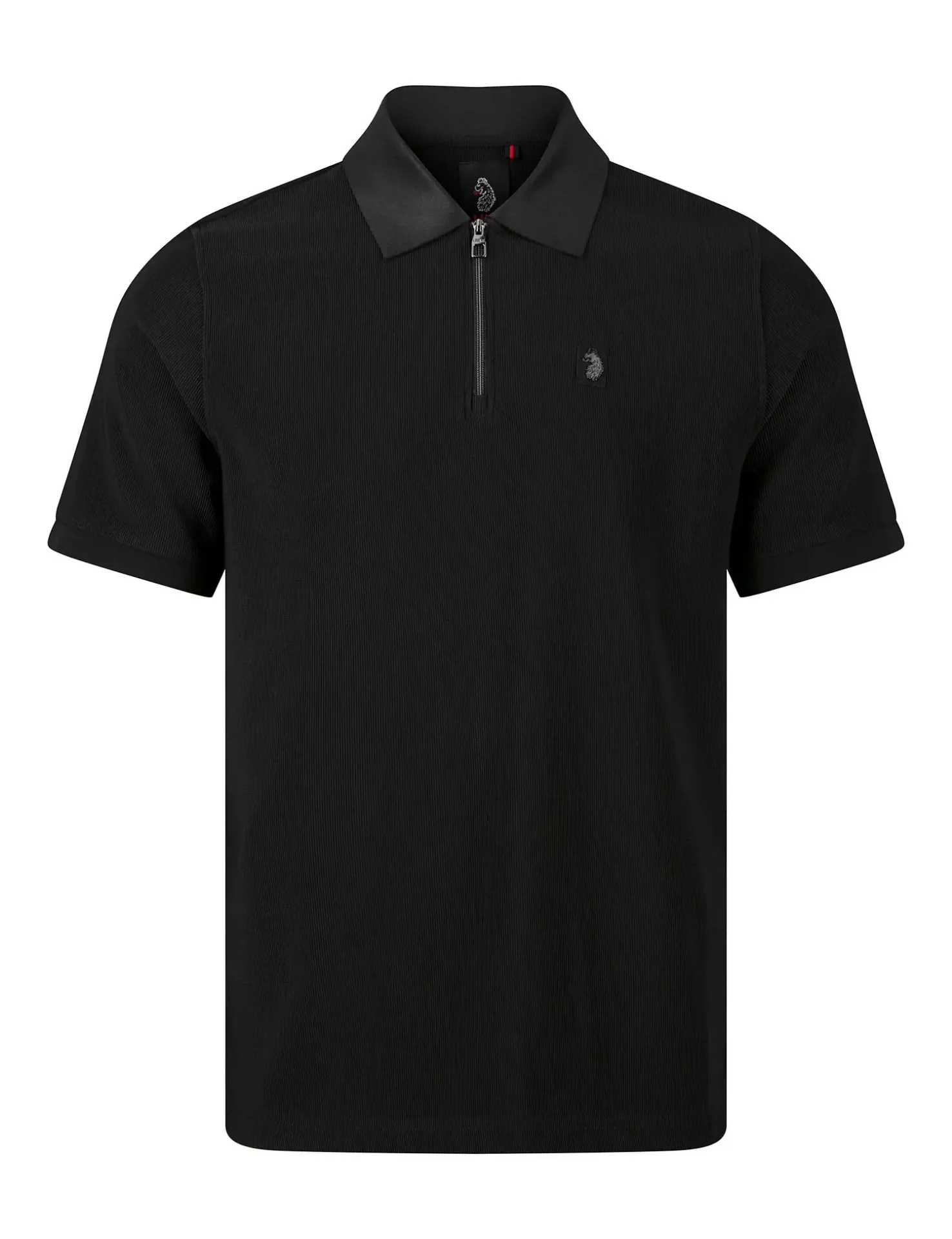 Luke Penrith Zip Neck Short Sleeve Polo Shirt | Black