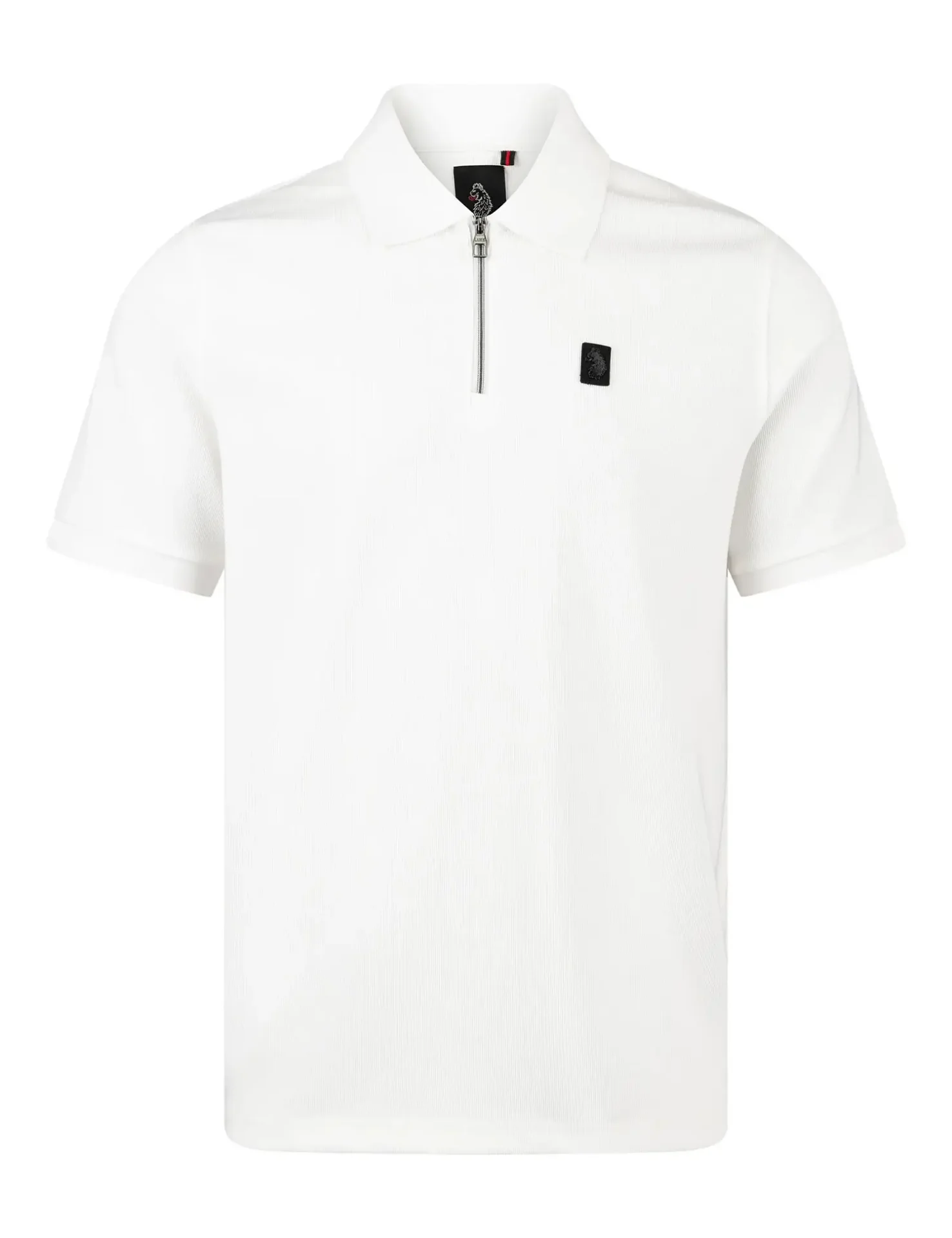 Luke Penrith Zip Neck Short Sleeve Polo Shirt | White