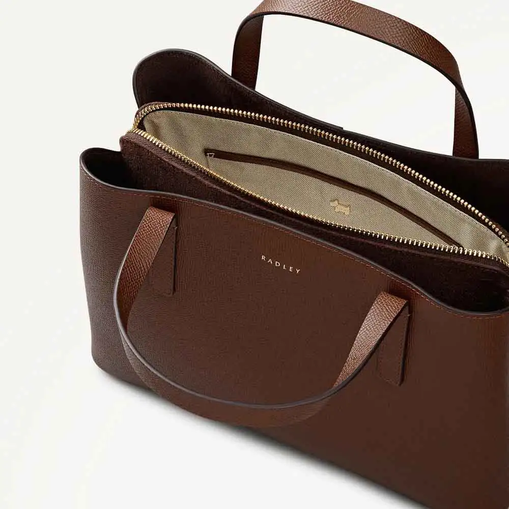 DUKES PLACE, The bestselling collection of bags from Radley. This Medium Ziptop Grab bag is beautifully crafted in distinctive textured grain-embossed leather and is styled with a multistrap construction.