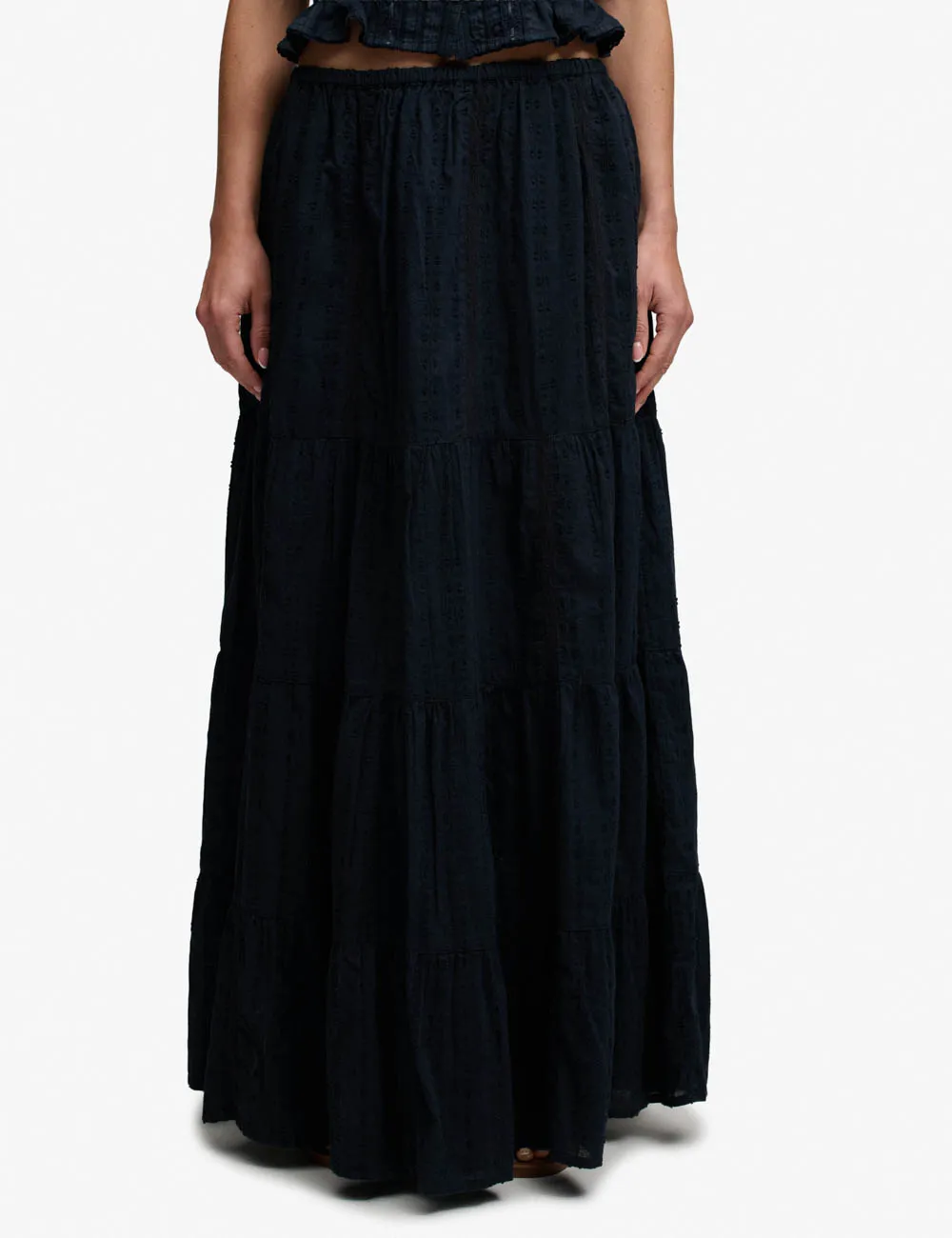 Superdry Womens Tiered Maxi Skirt | Eclipse Navy