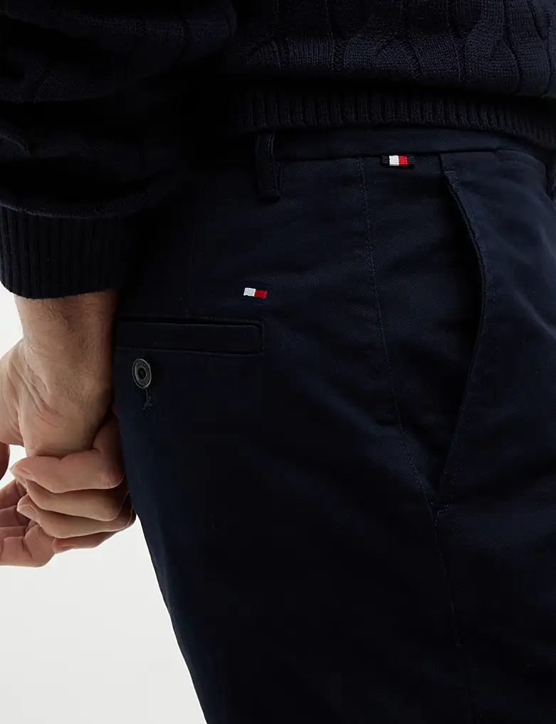 The Dover Twill Chino 8" Inseam Shorts from Tommy Hilfiger offer a smart, versatile option for warm-weather dressing. Crafted from stretch cotton twill, they provide comfort with a clean, structured look. Designed in a regular fit, they feature a zip and button fastening, angled side pockets and buttoned welt pockets at the back. Finished with signature tape detailing and the iconic Tommy Hilfiger flag embroidery, these chinos deliver timeless style with a modern edge.