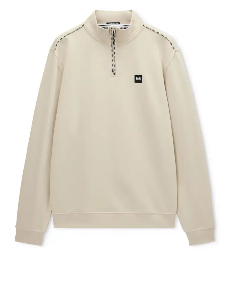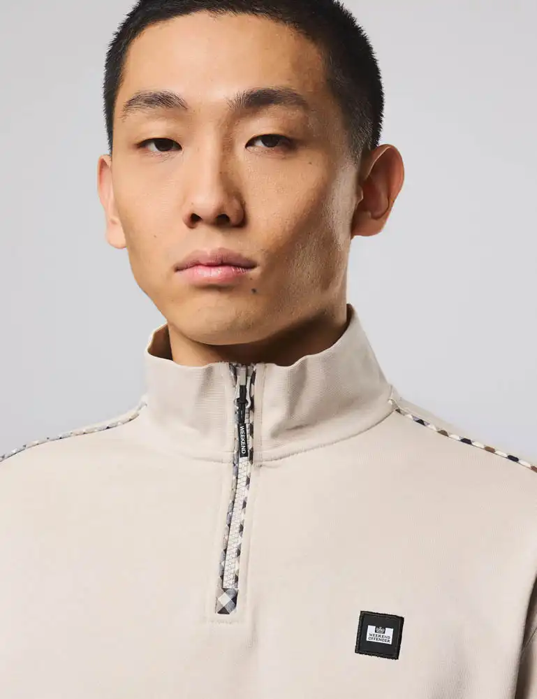 The Matisa sweater from Weekend Offender is a perfect casual mid-layer. Crafted in brushback fleece cotton it features a Quarter-zip funnel neck and woven check trims to the shoulders.