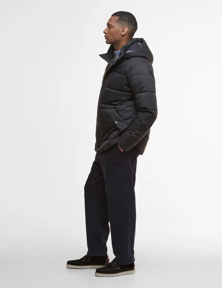 The Brampton Puffer jacket is designed to keep you warm and protected this winter, with it's generous baffle quilting, storm placket and padded hood. This jacket is designed with a brushed herringbone outer fabric that gives a smarter edge.