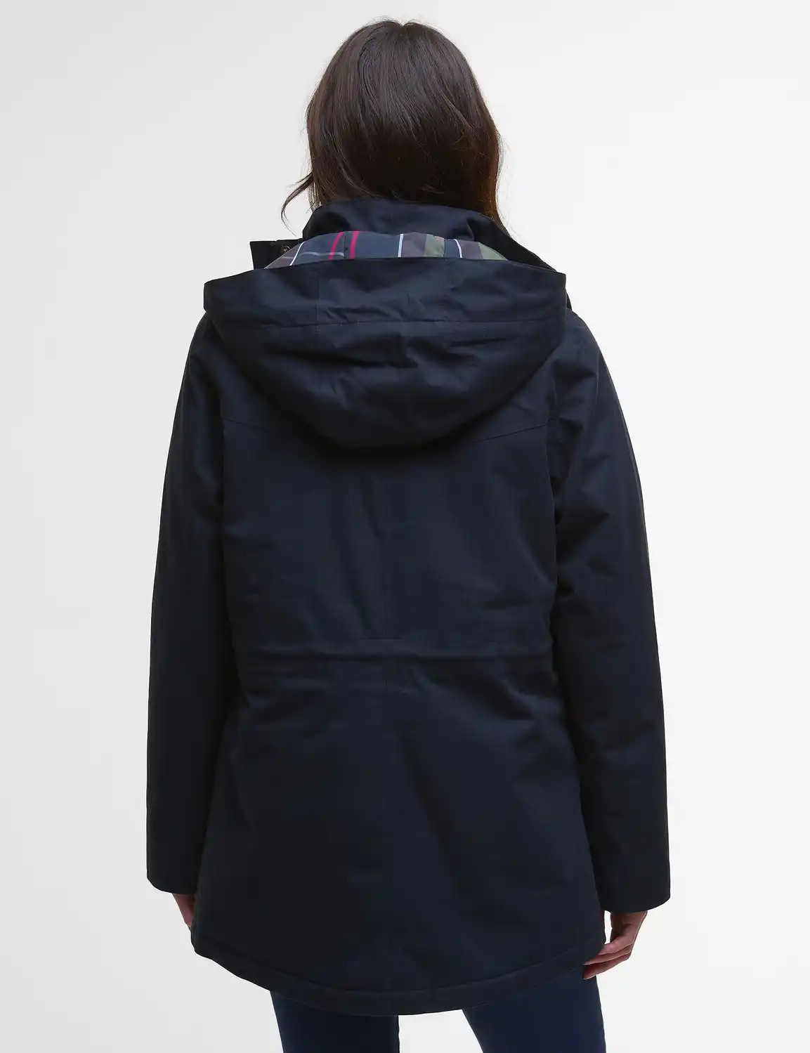 The Barbour Buttercup Waterproof Jacket seamlessly blends timeless Barbour style with all-weather functionality. Crafted with a water-repellent outer fabric, it's ideal for rainy-day adventures. Featuring an adjustable waistband and hood for a personalized fit, it ensures comfort no matter what the outdoors has in store. A funnel collar adds extra warmth, keeping the cold at bay.