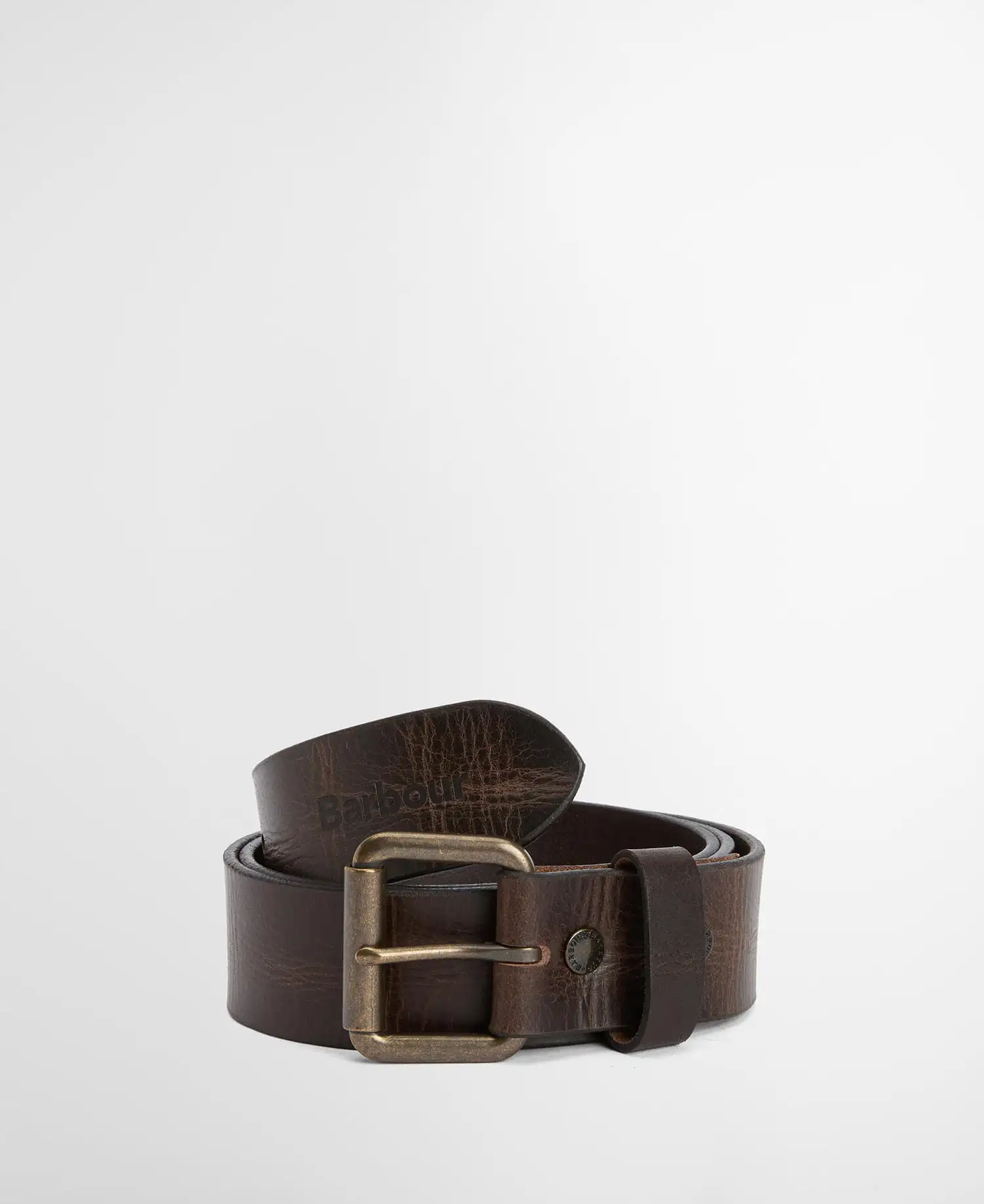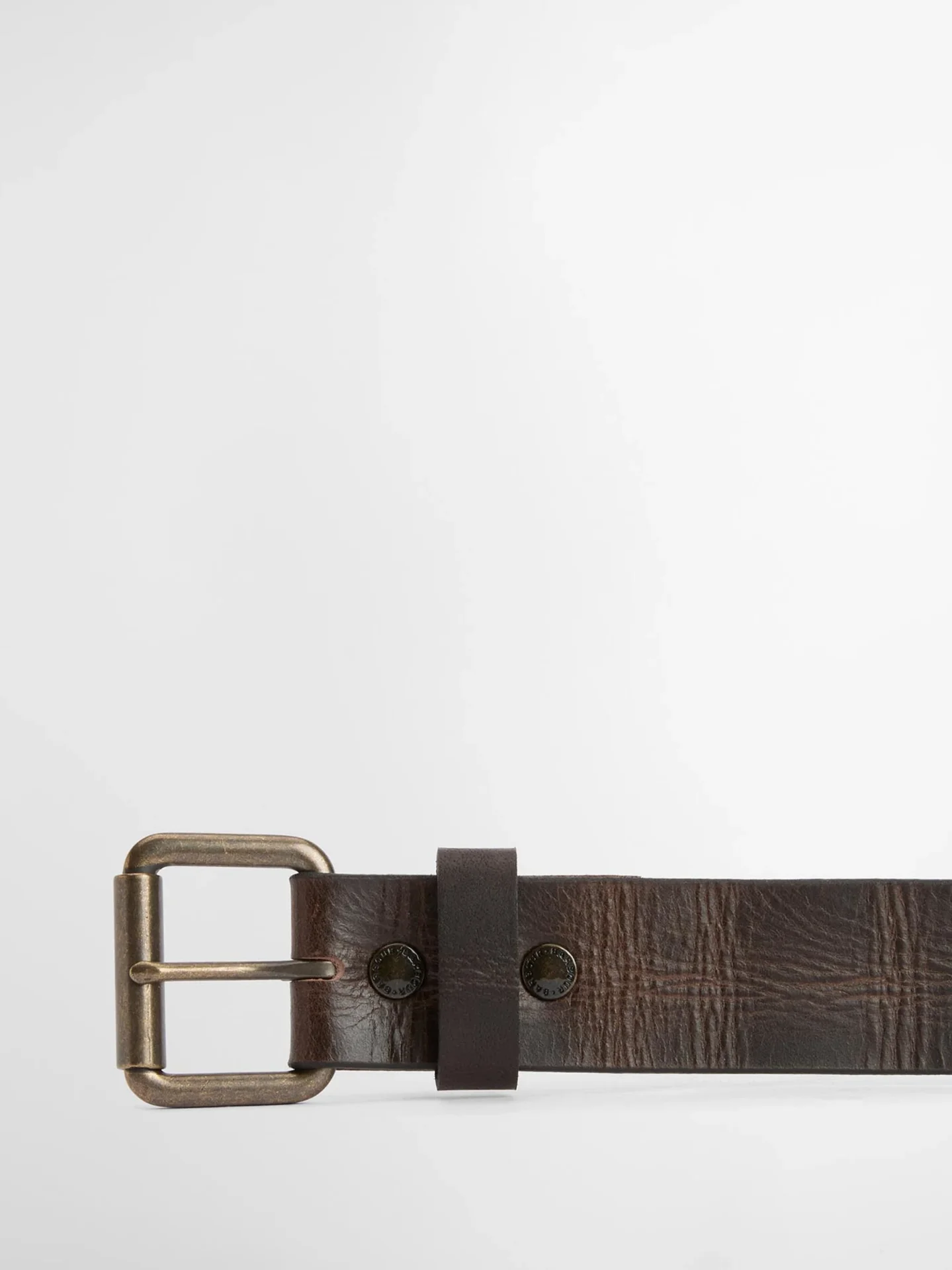 Crafted from real leather in a aged-effect finish for an authentic look, the barbour Deveron belt has an brass effect metal buckle fastening and embossed Barbour logo branding.