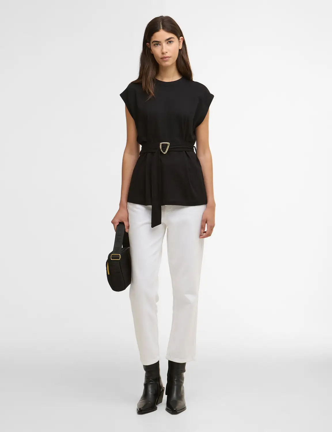 The Barbour International Alexis top, an effortlessly stylish piece that is crafted in soft jersey cotton and styled in a relaxed fit. A self fabric belt and a Barbour Intl branded buckle brings in the sides to make for a more flattering silhouette.
