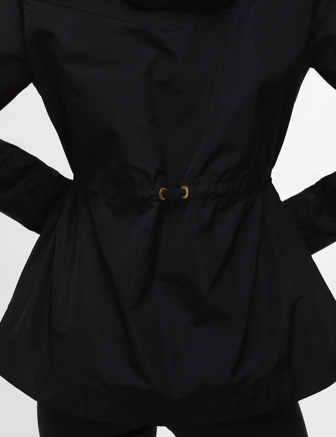 A casual light-weight jacket from Barbour Intl, crafted in a technical, showerproof fabric. The Piper Jacket has a flattering tie at the waist, a large hood with peak and front pockets with two-way entry.
