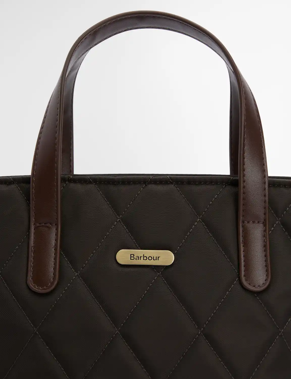 Compact yet stylish, the Barbour Quilted Mini Tote Bag offers a modern twist on a classic design. Crafted from durable nylon with a signature quilted finish, it features sleek leather-look handles and a coordinating front badge for a refined touch. Perfectly sized to carry your daily essentials, this versatile tote blends practicality with understated elegance, making it an effortless companion for city strolls or weekend outings.