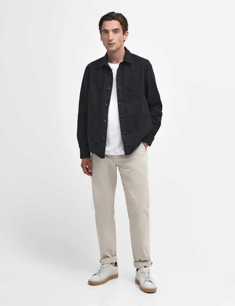 A workwear inpsired casual overshirt from Barbour, crafted in robust cotton that has been washed for a softer handle and a lived in look. The overshirt is styled with a pointed collar, a single patch pocket to the chest and side-entry welt pockets.  A versatile piece that can be styled on its own or over your favourite mid-layer.