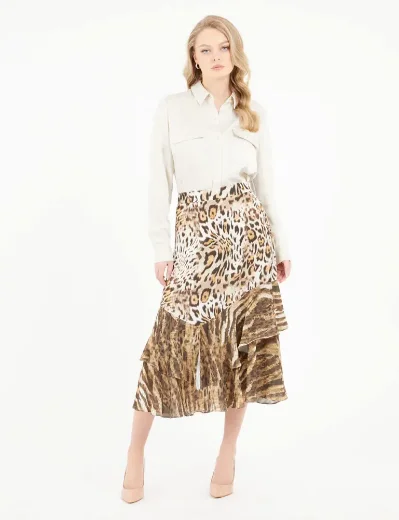Guess Womens Chantal Flare Midi Skirt | Animal Print