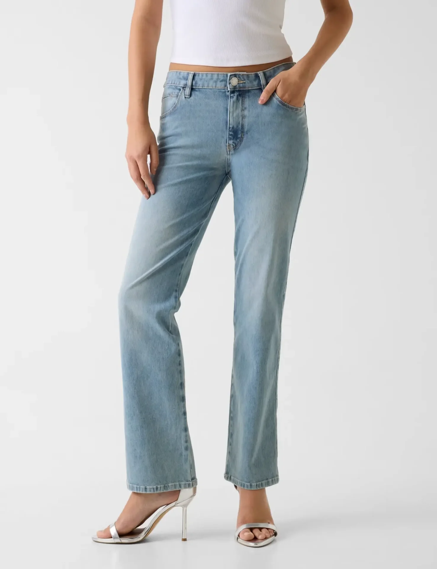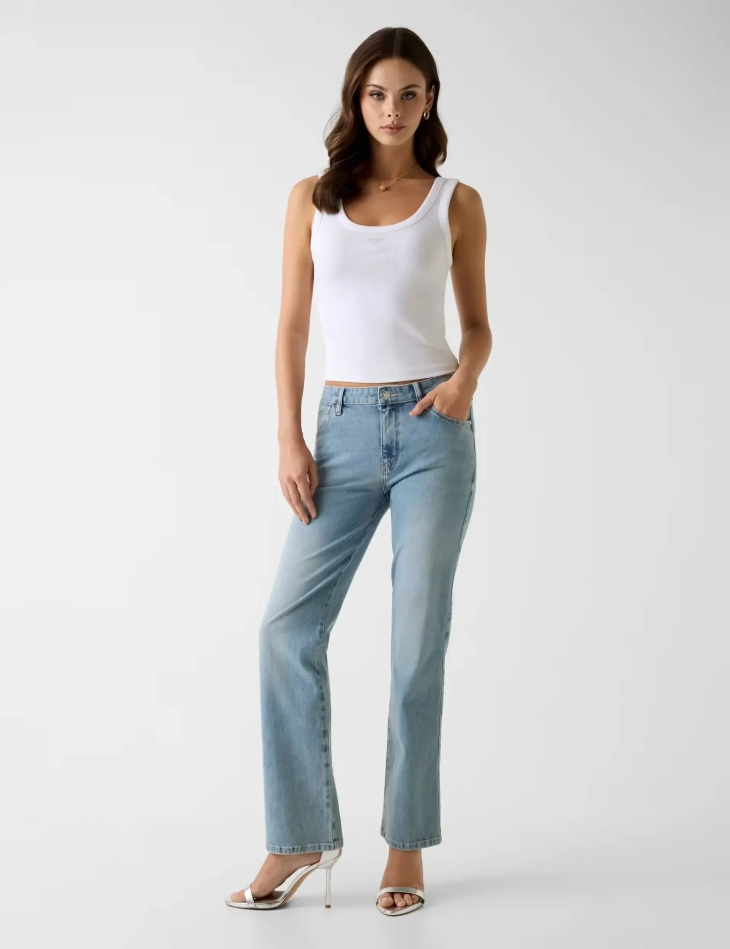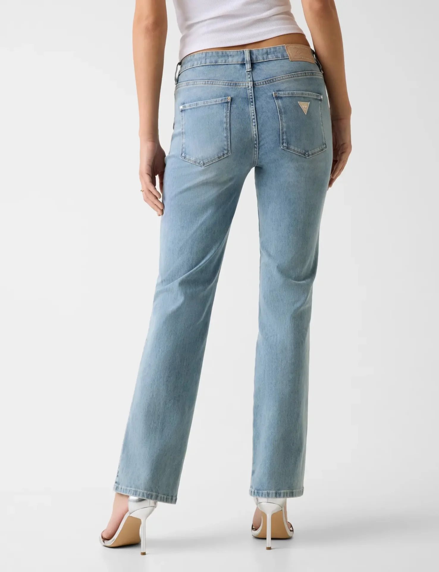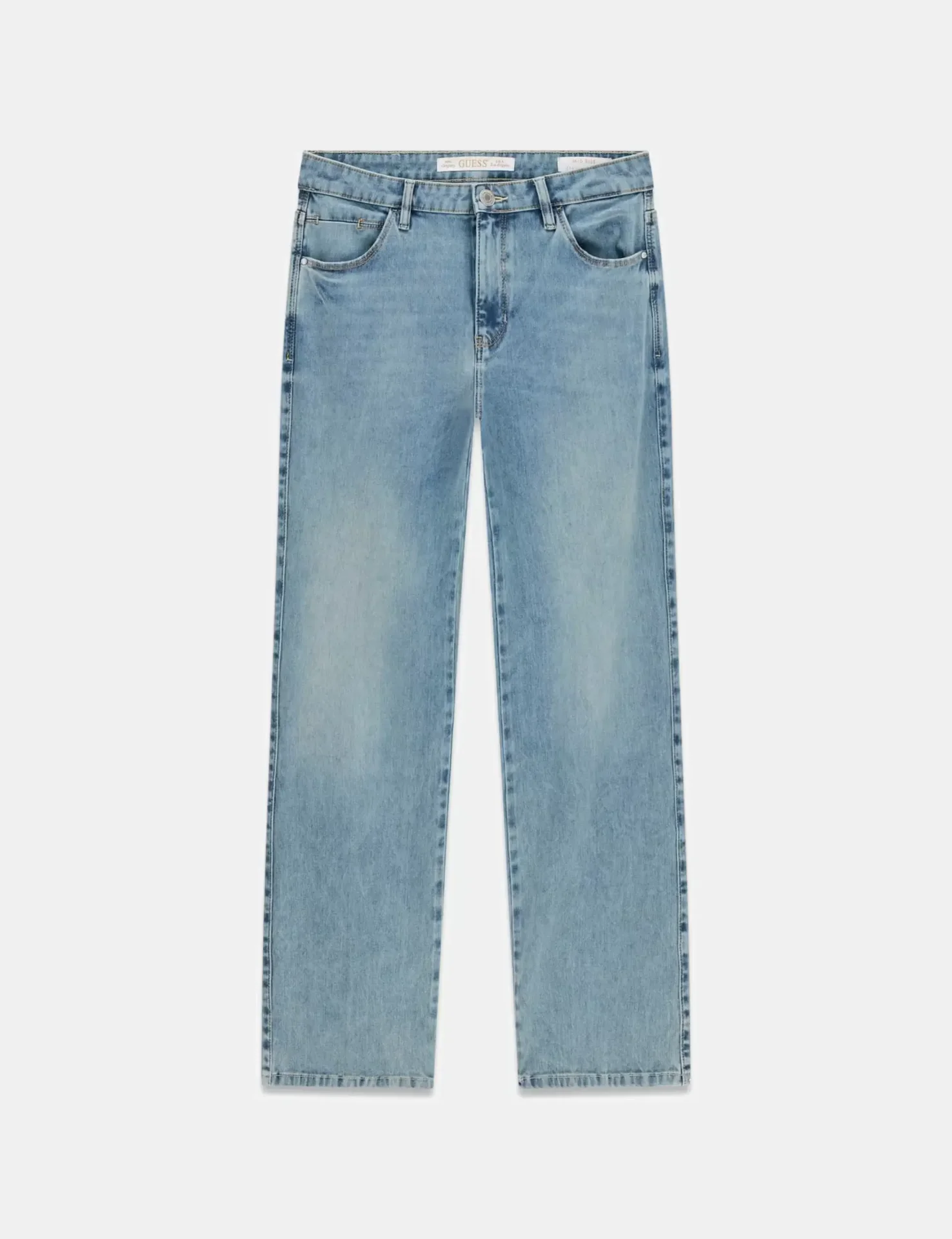 The Guess Sexy Straight Jeans combine comfort and style with their stretch cotton fabric, mid-rise waist, and straight-leg cut. Finished in a vintage effect light wash with a classic five-pocket design, they’re a summer essential.