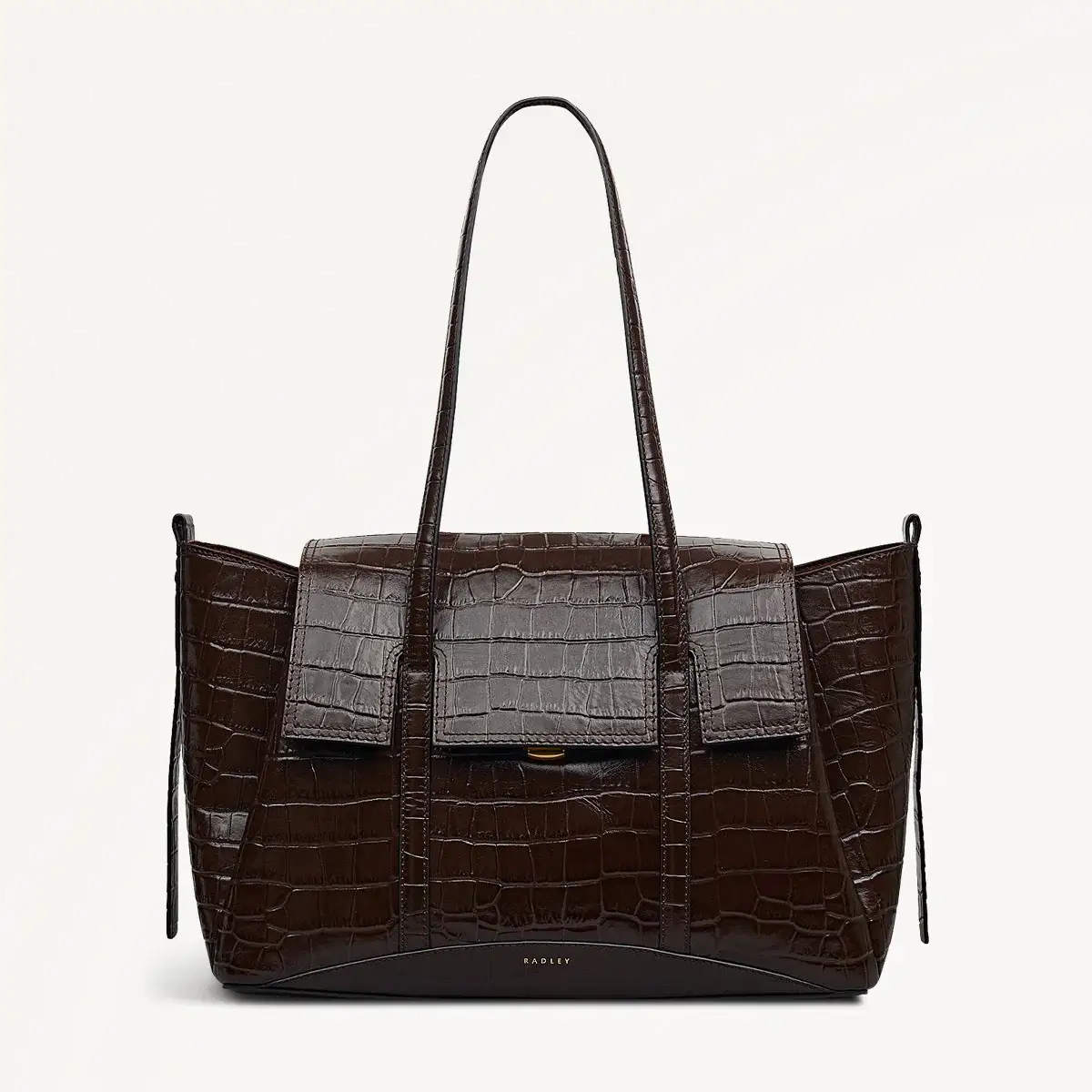 Radley The Chancery Faux Croc Medium Flap Shoulder / Dark Oak